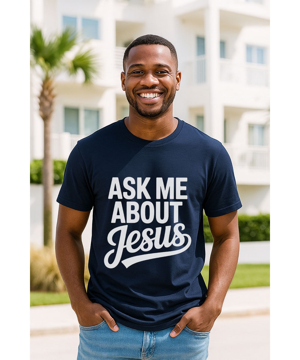 Ask Me About Jesus Christian T-Shirt – Bold Faith Statement Design