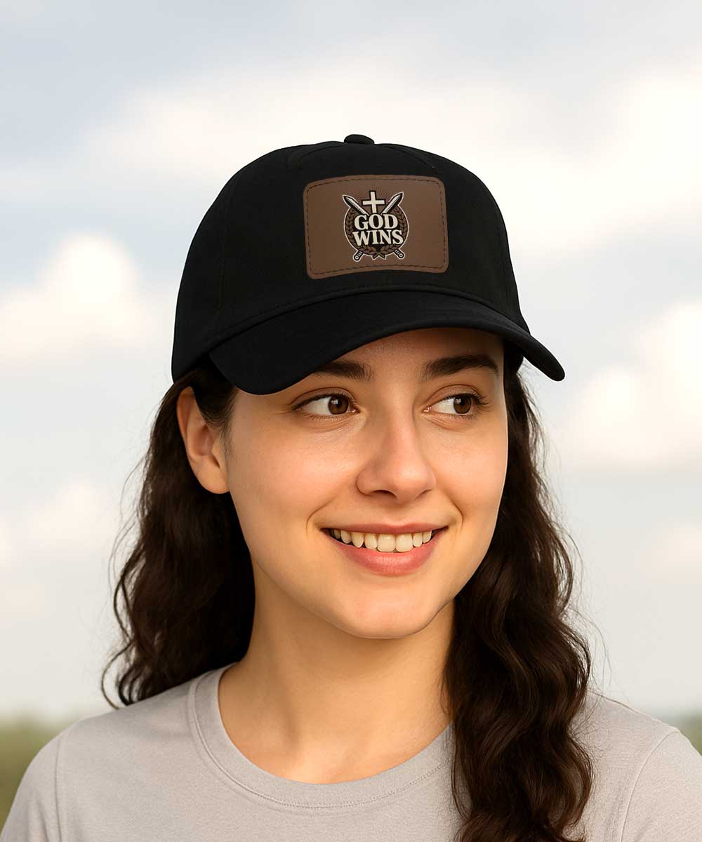 God Wins Christian Hat with Leather Patch
