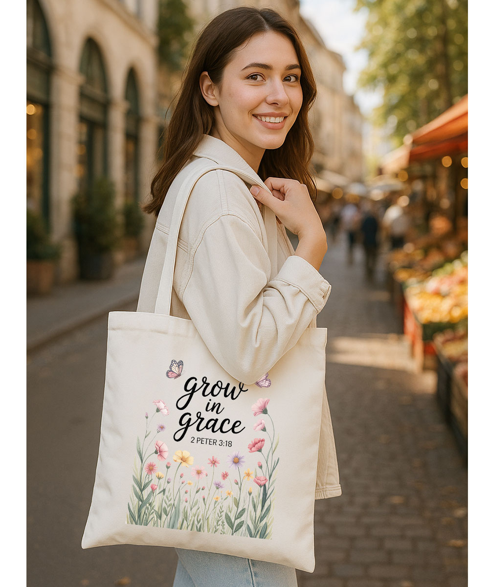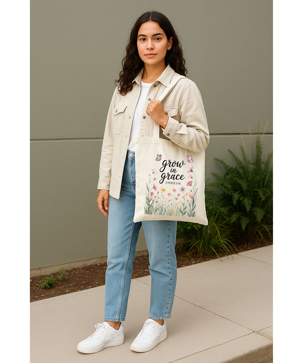 Grow In Grace Christian Tote Bag | 2 Peter 3:18 Scripture Tote