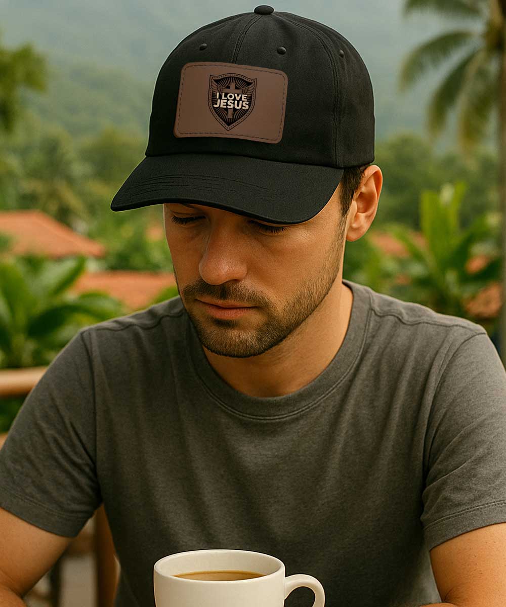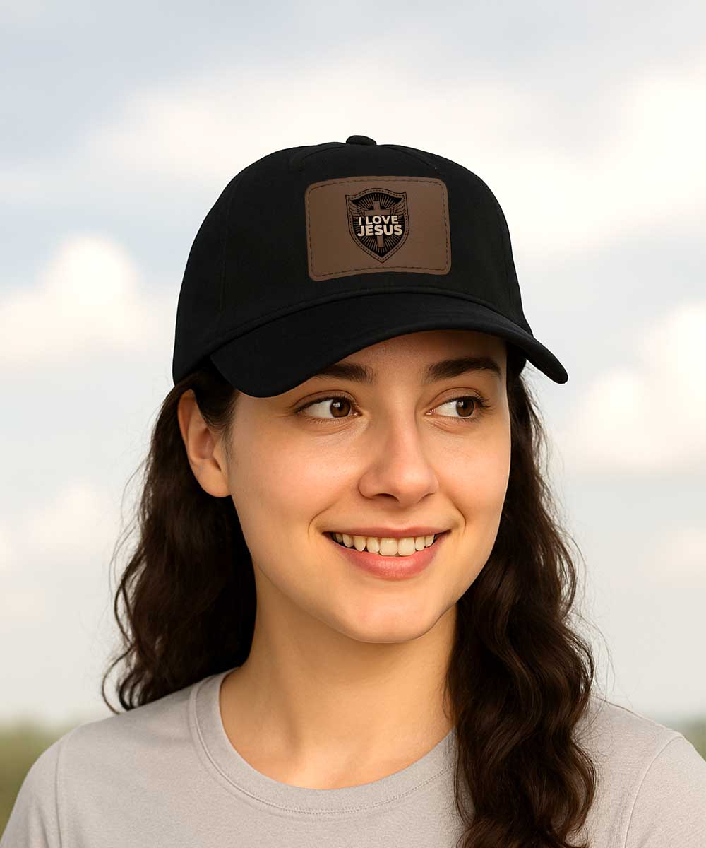 Make a simple, powerful statement of devotion with this I Love Jesus christian hat. Featuring the heartfelt declaration within a handsome shield-and-cross design on a quality faux leather patch, this classic dad hat is a comfortable and stylish way to share what’s truly in your heart. It’s a bold yet tasteful expression to help you Wear Your Faith. Share Your Hope.