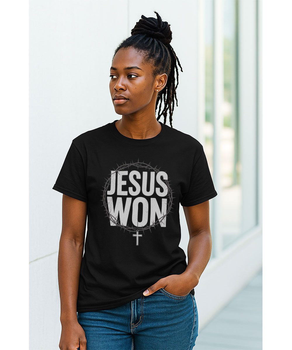 Jesus Won Christian T-Shirt – Victory Declaration with Crown of Thorns Design