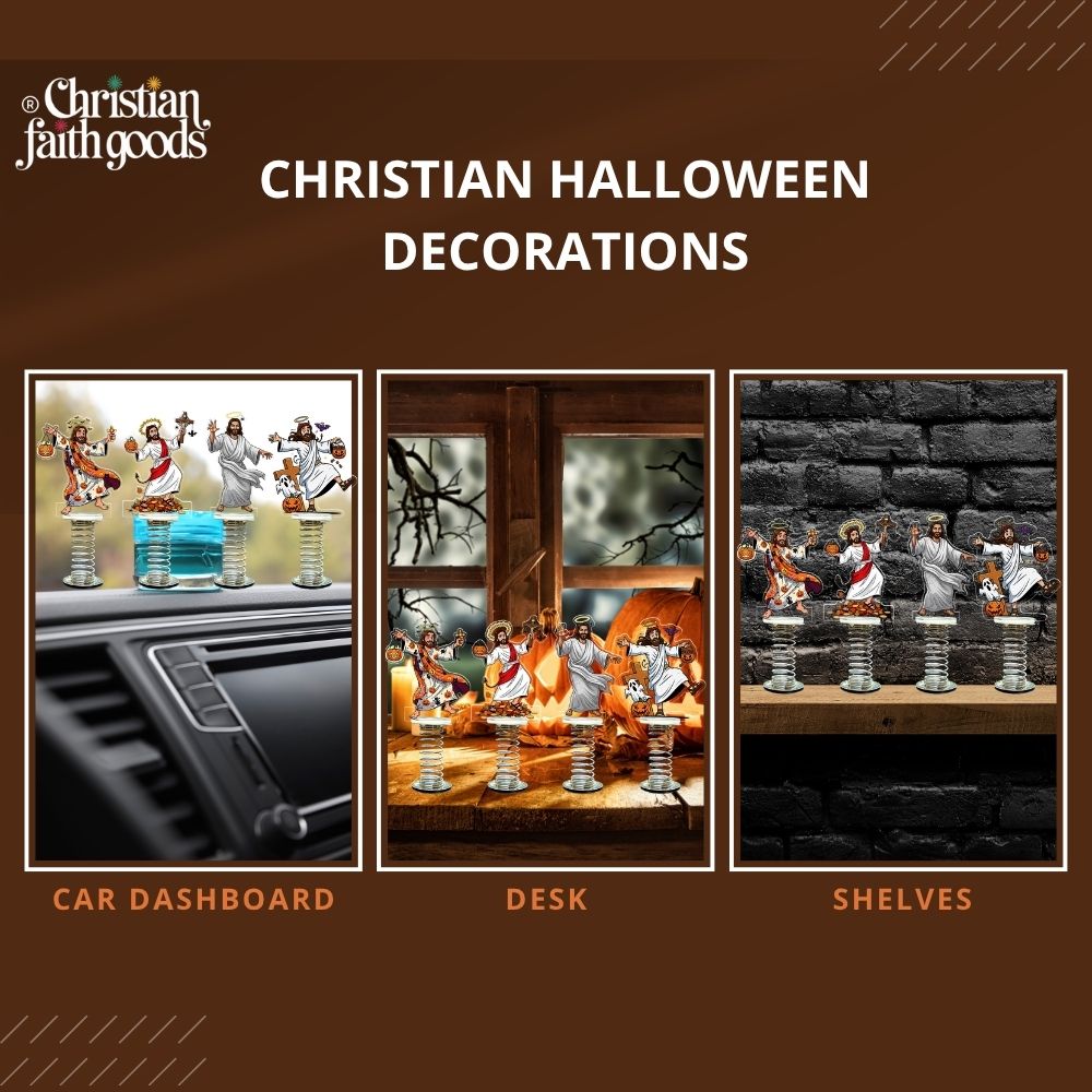 Looking for a hilarious yet heartfelt way to celebrate the season? Our Set of 4 Funny Christian Halloween Decorations – Jesus Halloween Spring Standees blends playful Halloween spirit with your enduring faith. These whimsical figures of Jesus dressed for the fall festivities will bounce right into your heart – bringing smiles, laughter, and a reminder of Godโs light even on the spookiest nights.